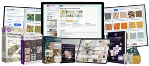 PatternProfit AI is a complete system that lets you create 100% seamless, 300 DPI print-ready digital patterns in minutes using AI (mainly Midjourney).